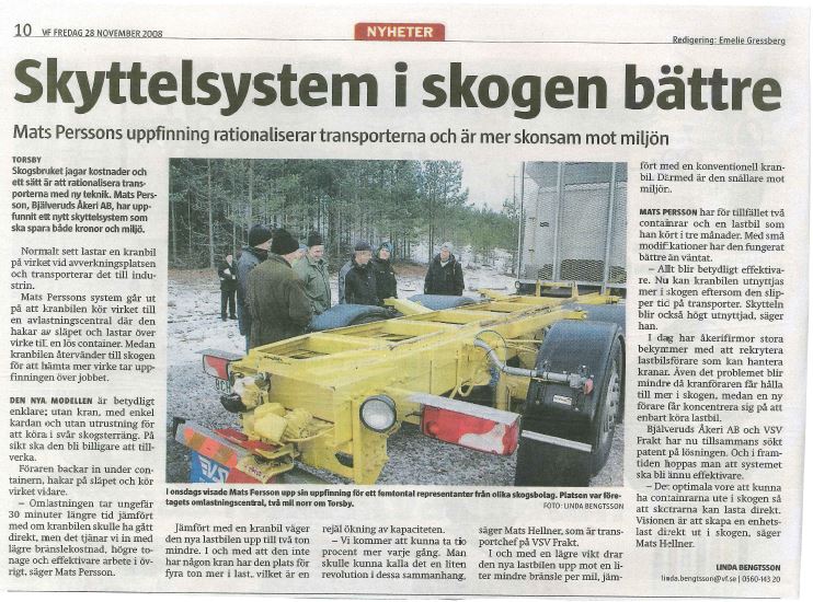 Mats Persson, Bjälverud åkeri har uppfunnit ett nytt skytelsysytem somsparar både kronor och miljö.