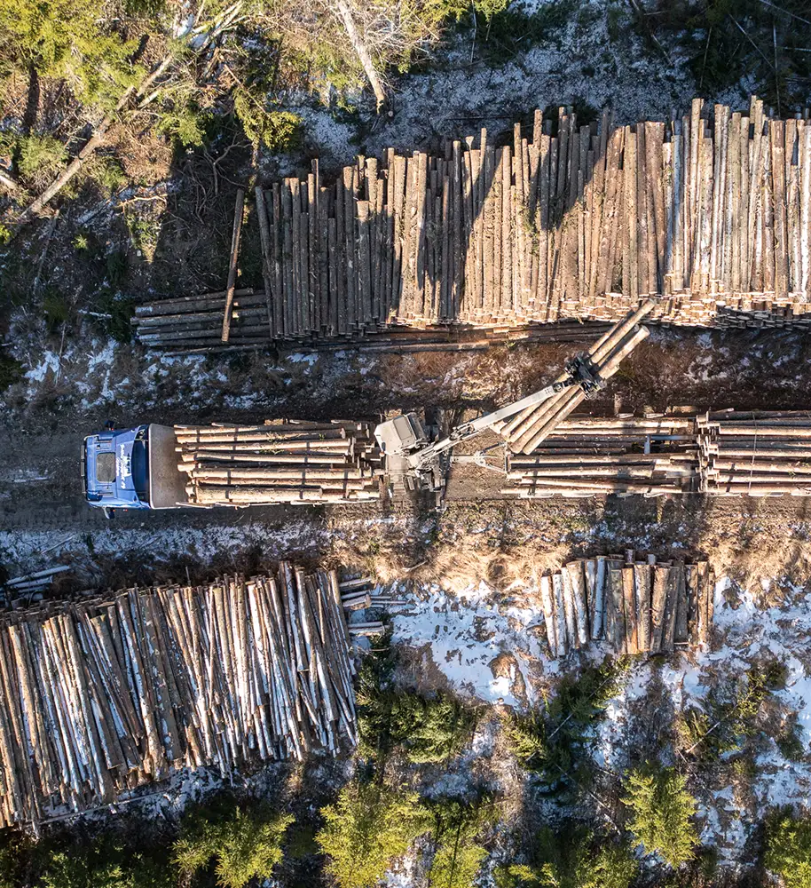 Vi löser kundernas behov av rundvirkeshantering. Stora och små åtaganden planeras in i våra normala flöden och hanteras både effektivt och miljövänligt.